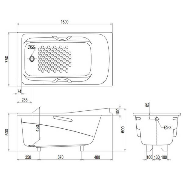 | Thanh tay vịn | Đã được thiết kế sẵn trên thành bồn tắm |