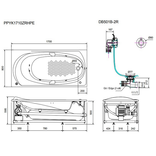 Thông số kĩ thuật Bồn tắm cao cấp TOTO PPYK1710ZRHPES